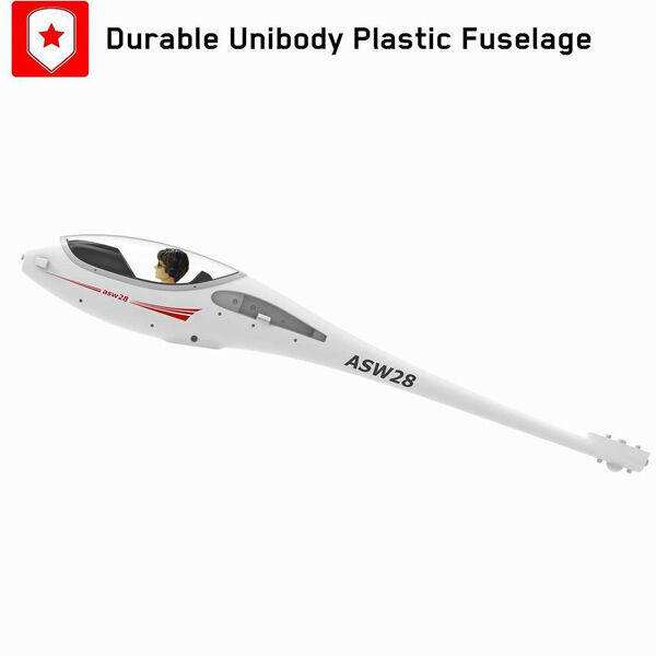 The V2 ASW-28 is a foam and plastic hybrid model with some nice upgrades over the V1. The wing set and tail are made of EPO foam, while the fuselage is made of blow molded plastic, which should provide a good mix of durability and performance. This version includes a servo motor and controller (esc). You only need to get your own radio system and a 3S 1800-2500mAH Li-po battery to get started.