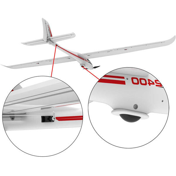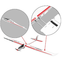 Assembling the glider is quite easy with no glue required. The wing halves simply snap into place along with a rigid wing spar for added strength. The main wing is 2400 millimeters long and contains ailerons and flaps for better aircraft control. The fuselage has a built in single wheel for easier landing on rougher runways.