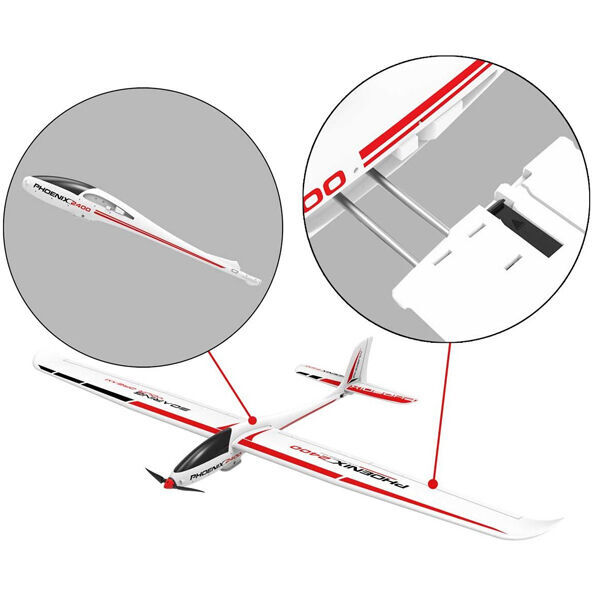 The Phoenix 2400 is the largest glider in the Phoenix range. It comes with an ABS plastic hull and strong EPO foam wings and tail section. An additional canopy with camera mount is included.(camera sold separately)  Once you have your camera installed, you can either enjoy FPV flying or just take pictures of your flights.