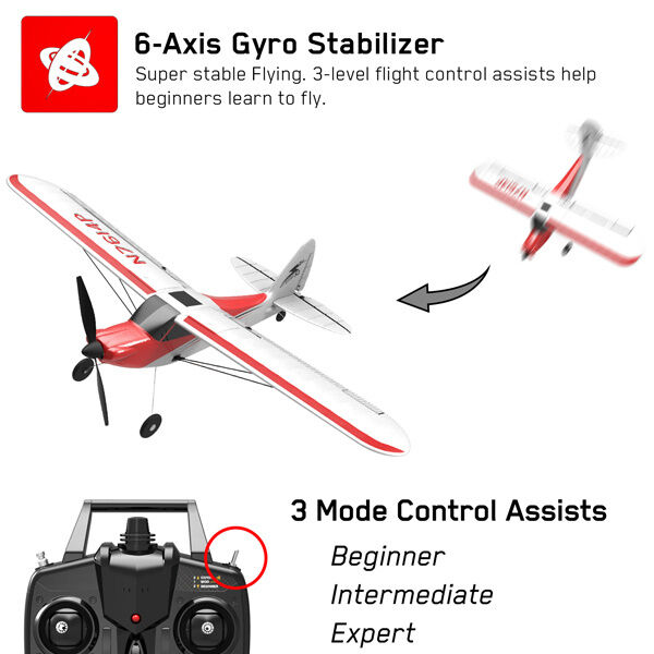 BEGINNERS' FIRST rc trainer airplane - 3-level flight control assists(Beginner level with full assist/ Intermediate with partial assist/ Expert for manual control) help beginners learn to fly step by step.