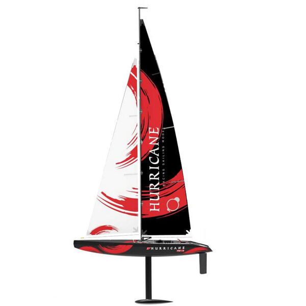 The Hurricane is a sailboat in the popular one metre class, making it an excellent choice for both hobby sailors and those looking to take the leap into competitive sailing. With a length of 990 mm, a mast that extends 2130 mm above the deck and a hull width of 220 mm, it offers a stable and realistic sailing experience. Despite its size, the boat weighs only 1350 grams, making it easy to handle both on and off the water.