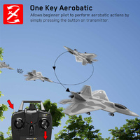 The Volantex 4 channel F-22 Raptor is the perfect ready-to-fly small jet style airplane that comes completely ready to fly with transmitter, receiver, integrated ESC, and built-in 6-axis gyro/stabilizer. This gyro system offers super stable flying and self-levelling which makes it perfect for early and relatively inexperienced pilots. The gyro is switchable from the transmitter, 3 modes can be selected. The first is beginners mode which gives maximum stabilisation and reduces the amount of control the pilot has, the second is intermediate, this reduces the stabilisation and gives the pilot slightly more control. The final mode is no gyro stabilisation and the pilot has full control authority. It also features a "One-Key" aerobatic system which makes performing aerobatics like loops and rolls a breeze.