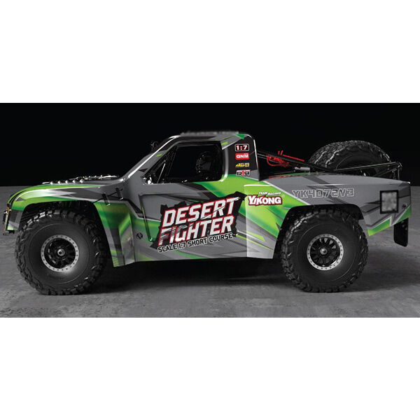 The YIKONG DF7 V3 1/7 RC Crawler Desert Short Truck is a powerful, fully assembled and painted off road vehicle designed for serious RC enthusiasts. With a high performance 4274 1600KV brushless motor, HobbyWing MAX8 ESC, and 35KG servo, this 4WD RC car delivers exceptional speed and control. Its durable design features a robust metal and plastic body, large 700mm length, and 430mm wheelbase, ensuring excellent off road performance. The vehicle’s 6 channel radio system offers full control for all types of terrain. This model is ideal for anyone seeking an exhilarating off oad RC experience.