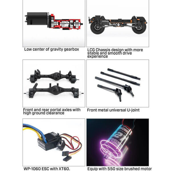 2 Speed Transmission - Allows for both high speed trail running and low speed crawling, providing flexibility in various terrains.